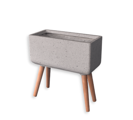 กระถางไฟเบอร์ซีเมนต์พร้อมขาไม้ 18*40*42 CM. สีหินขัดเทา